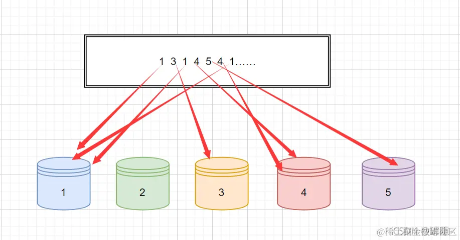现假设有一组数据的范围在0~5,我们开辟5个“桶”,与每个数一一对应,来对其计数。什么意思呢,我们画个图来理解。
