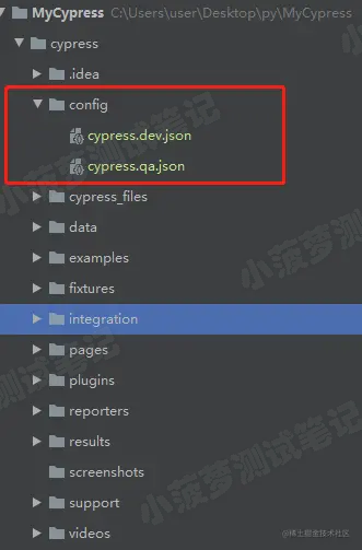 - 文件夹下建立两个文件,分别命名为 cypress.dev.json,cypress.qa.json