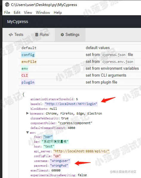 - 除 cypress.env.json 外,在运行时指定测试环境的同时仍然可以使用 cypress.json 文件