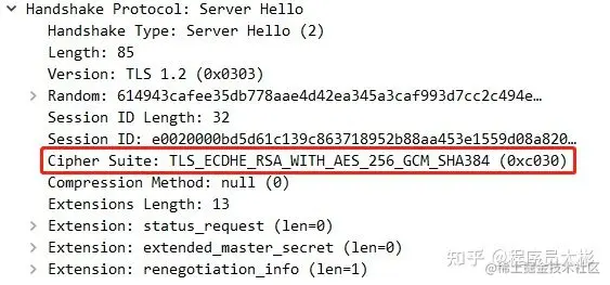 Server Hello,告诉客户端服务端选中的加密算法。\