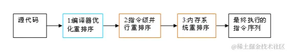 - 指令级并行的重排序。现代处理器采用了指令级并行技术(Instruction-Level Parallelism, ILP)来将多条指令重叠执行。如果不存在数据依赖性,处理器可以改变语句对应机器指令的执行顺序。