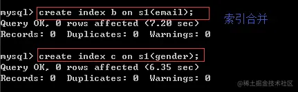 mysql> create index idx on s1(name,email,gender,id); #遵循最左前缀