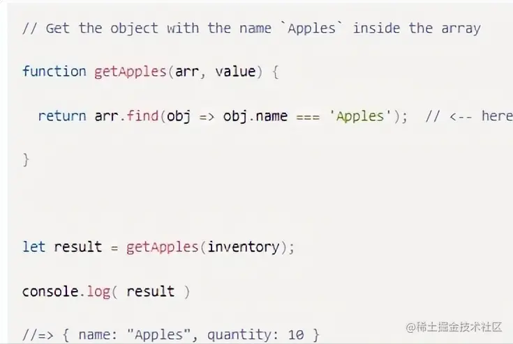 哇!上面我们写了这么多代码来实现这个逻辑。但是使用Array中的find()方法和箭头函数=>,允许我们像这样一行搞定: