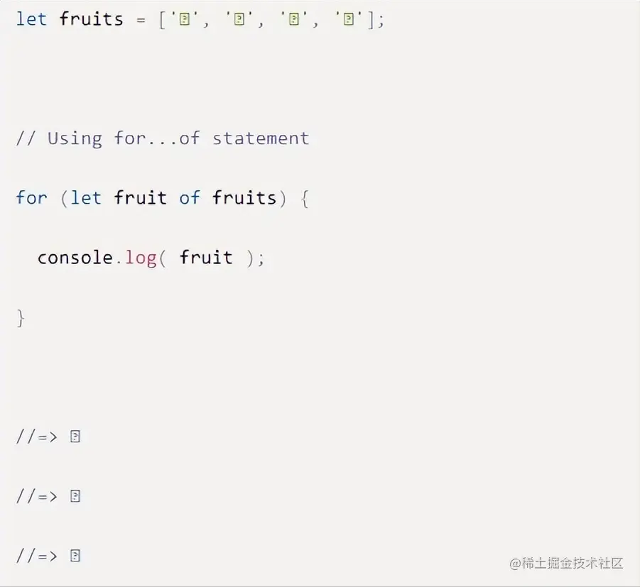 我们可以使用for...of语句实现相同的结果,而代码要少得多,如下所示: