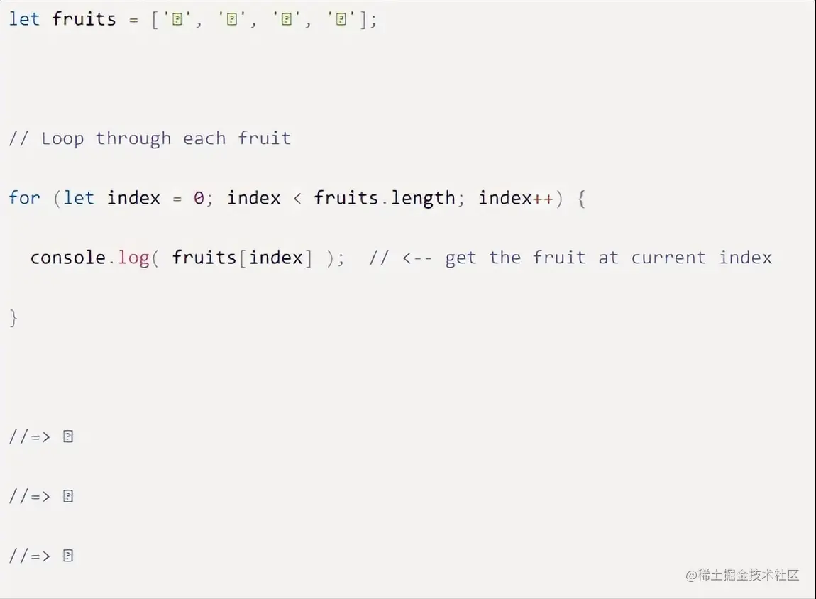 我们可以使用for循环像这样循环遍历一个数组: