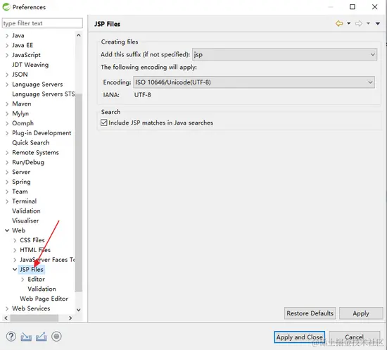 这是在 Eclipse 中设置文件编码,如果是在 IntelliJ IDEA中,则不需要设置JSP文件编码,因为默认就是 UTF-8,只需要提前设置下工程编码即可:
