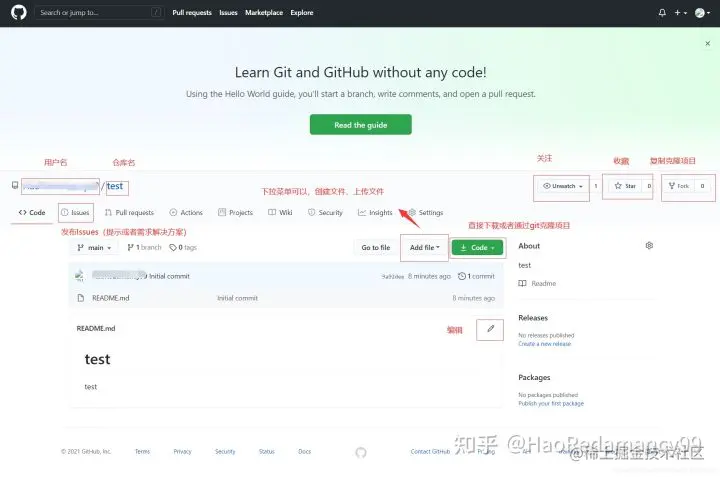 - 点击仓库名可以到仓库主页