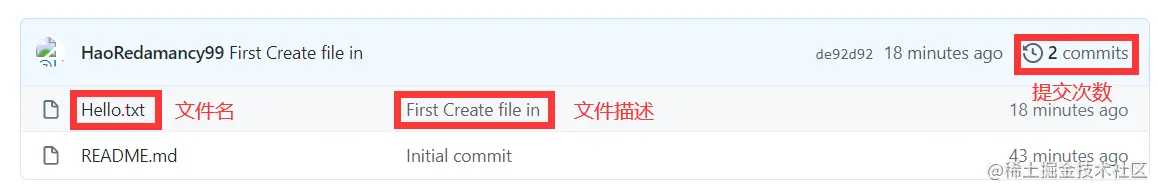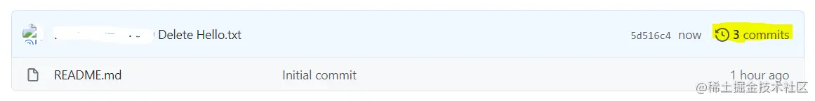 删除文件会跳转回仓库页面,会有删除文件提示,点击黄色标注区域可以查看删除详情