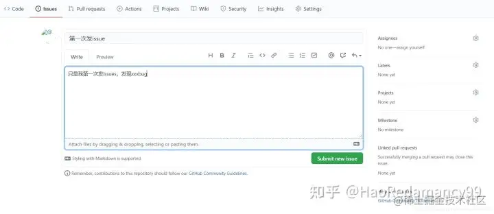 填写相关信息,里面可以像word一样编辑文本。填写完成后,点击 Submit new issue发布