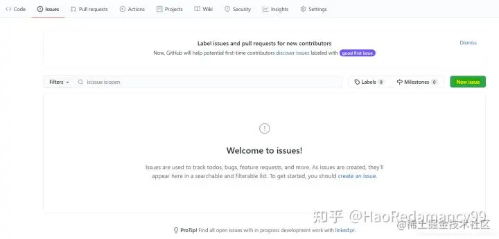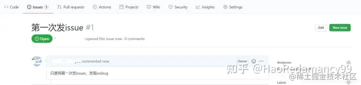 这里显示所有Issues列表,点击 New issue创建一个Issue