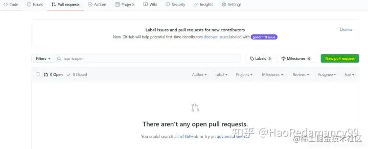 发起请求: 进入Pull request,点击New pull request