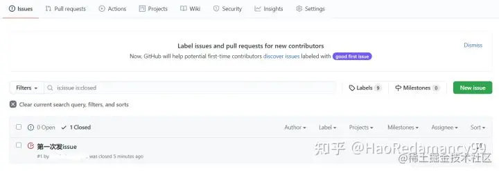 可以在仓库的Issues中看到Open和Closed的issues列表
