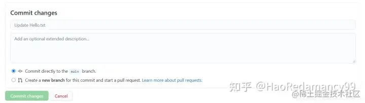 最后的Commit new file改为 Commit changes 添加更新信息