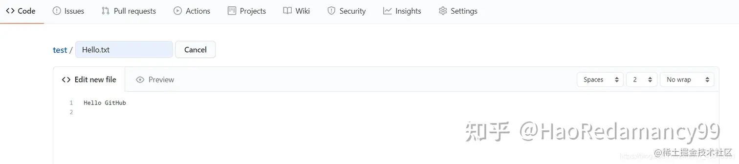 Edit new file 是填写文件内容
