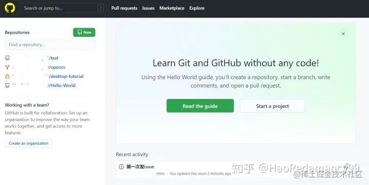 当原项目作者点击左上角的GitHub图标进入自己的项目时,会显示Recent activity得知有人改善了自己的项目。(我这里是自己给自己发)
