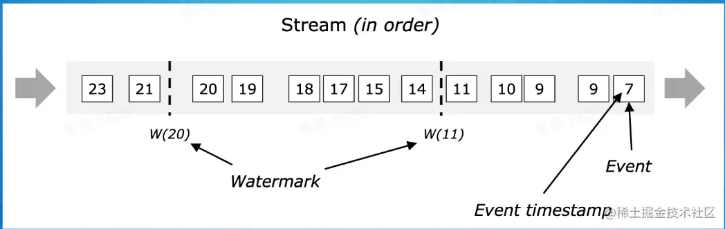 - 在数据中插入一些watermark, 来表示当前的真实时间