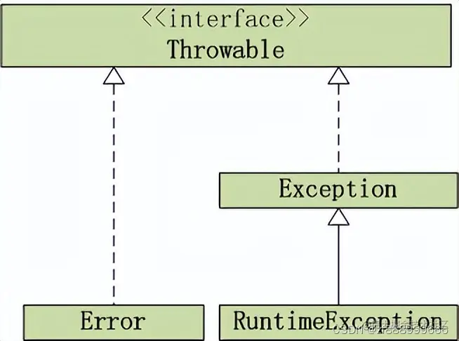 Throwable包含两个子类: Error 和 Exception。它们通常用于指示发生了异常情况。