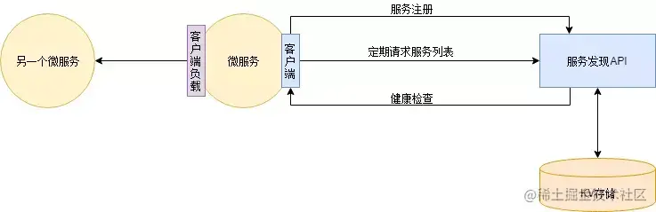 服务发现还会跟客户端负载均衡配合使用。由于应用服务已经同步服务地址列表在本地了,所以访问微服务时,可以自己决定负载策略。甚至可以在服务注册时加入一些元数据(服务版本等信息),客户端负载则根据这些元数据进行流量控制,实现A/B测试、蓝绿发布等功能。