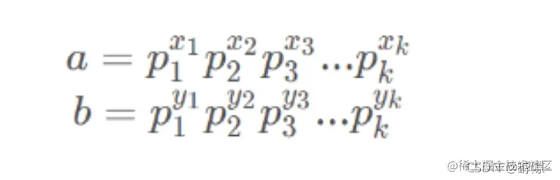 根据算数基本定理,我们可以将任意两个式子分解成如下的形式:
