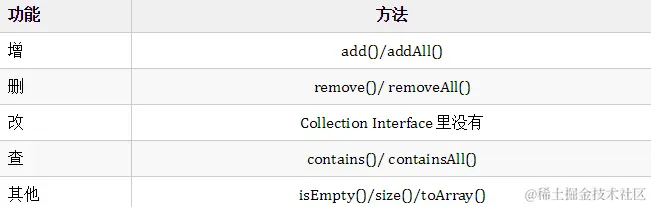 Collection Interface 里并没有直接改元素的操作,反正删和增就可以完成改了嘛!