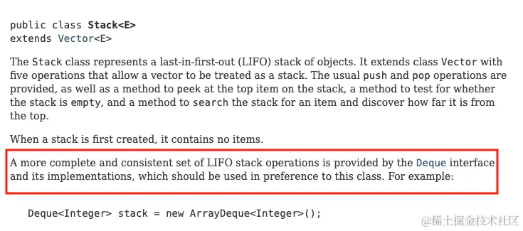 虽然 Java 中有 Stack 这个类,但是呢,官方文档都说不让用了!