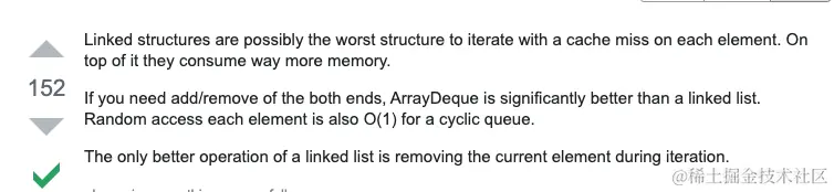 总结来说就是推荐使用 ArrayDeque,因为效率高,而 LinkedList 还会有其他的额外开销(overhead)。