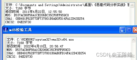 经过对照我们发现,md5一致。vmx32to64.exe就是恶意程序自身复制伪装的程序。