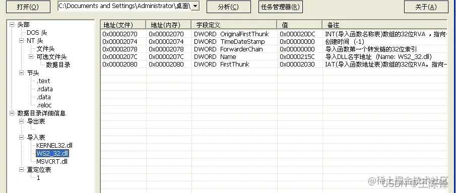从导入表中可以发现只有一个导入的动态链接库编辑