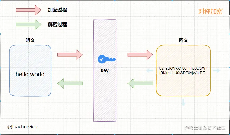 对称加密(也叫私钥加密)指加密和解密使用相同密钥的加密算法,过程如下图所示: