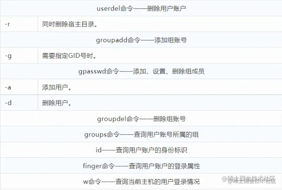 组:基于某种特定联系将多个用户集合在一起,构成一个用户组,用于表示该组内所有用户的账号称为组账号。每一个用户账号至少属于一个组,这个组称为该用户的基本组。若该用户同时还包括在其他的组中,这个组称为该用户的附加组。
