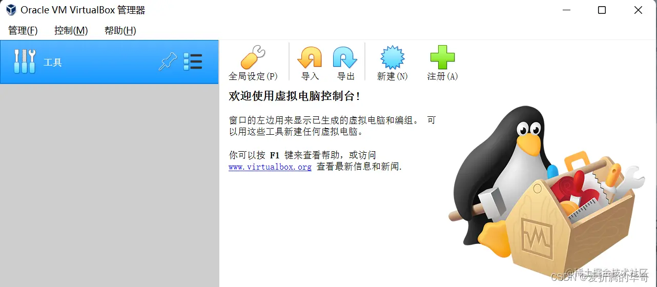 打开我们刚才安装好的 VirtualBox ,如下图:
