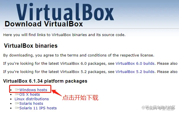 我们就来下载 virtual box6.1,好,我们下载Windows版的,在这儿找Windows