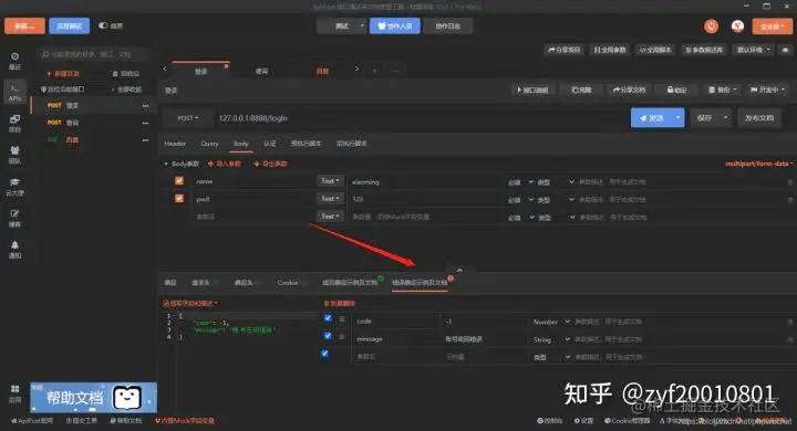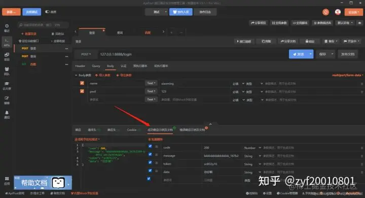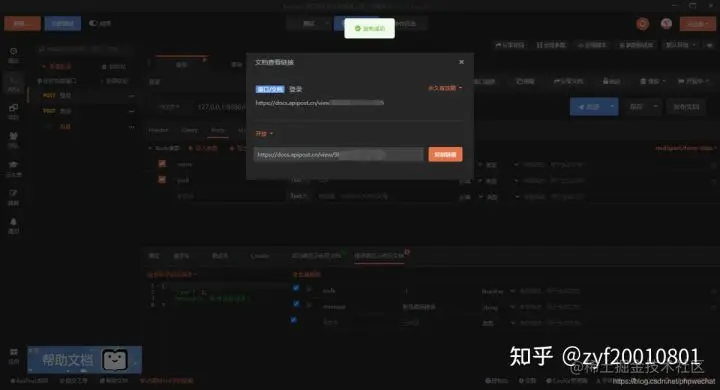 接口开发完测试好之后就需要,编写接口文档,apipost自带接口文档生成功能。 我们只需要保存好接口的数据,成功响应和失败响应