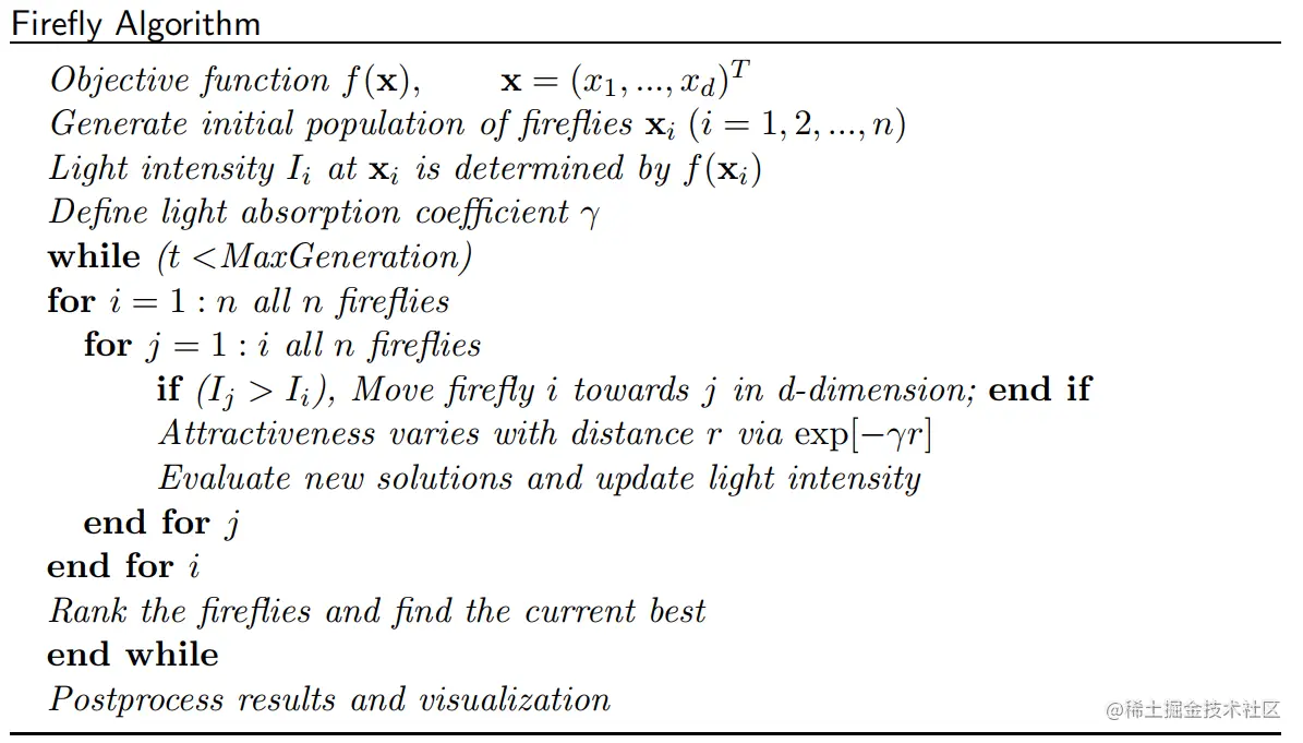 最近有小伙伴看到了我之前写的萤火虫算法相关的文章( 群体智能优化算法之萤火虫算法(Firefly Algorithm,FA)),说是比较感兴趣,同时又有一些问题不太明白,所以今天我详细地再结合代码介绍一下这个算法,源码可以通过“ Github”获取。\