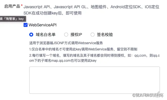 "message" : "此key未开启WebserviceAPI功能,您可登录lbs.qq.com,进入控制台key管理界面,找到此key并设置启用WebserviceAPI"
