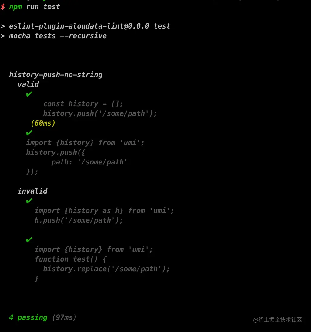 至此,我们完成了eslint插件及规则的开发