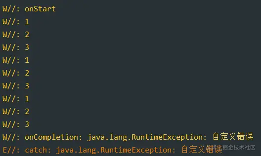 可以看到打印的顺序是和上面的一样的,只是换成了Flow来捕获异常了