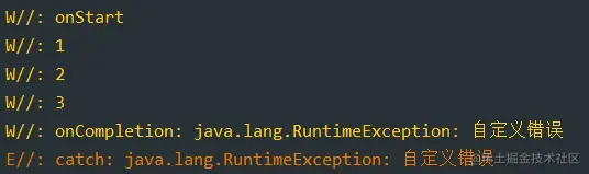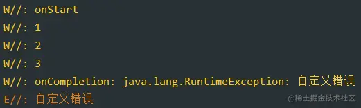 if (i == 3) throw RuntimeException("自定义错误")