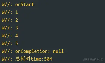 YYLogUtils.w("总耗时time:" + time)