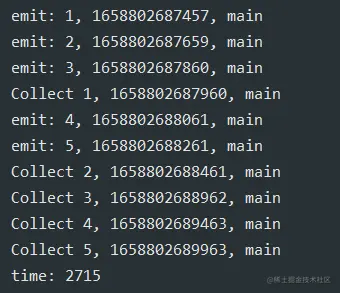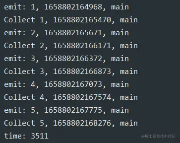 println("Collect $it, ${System.currentTimeMillis()}, ${Thread.currentThread().name}")