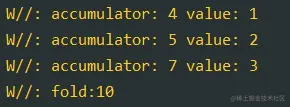 YYLogUtils.w("accumulator:" + accumulator + " value:" + value)