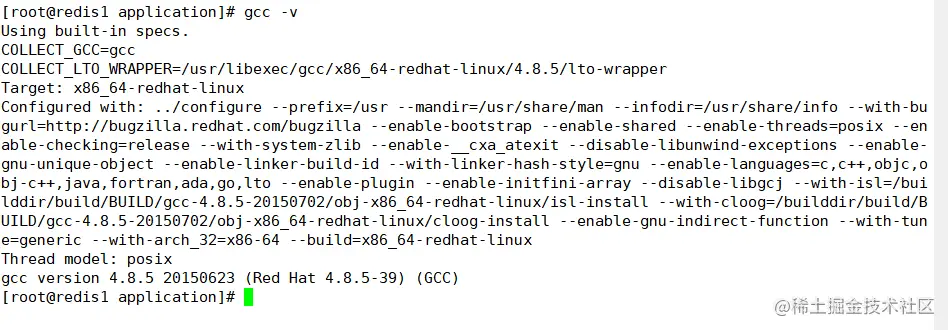 [root@redis1 ~]# gcc -v #验证gcc编译工具安装成功,下图回显为成功
