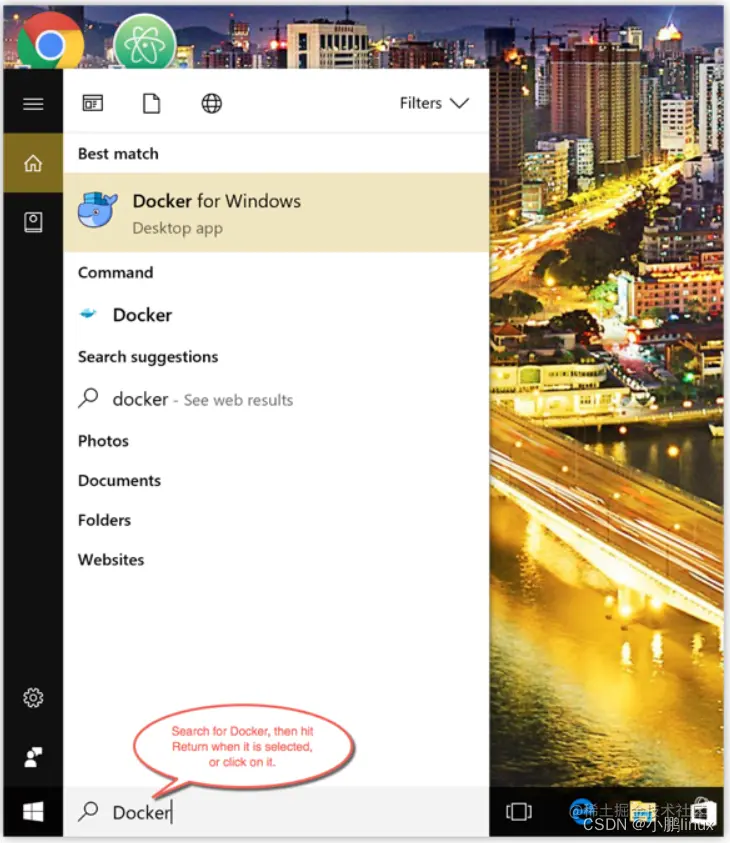 | 在 Windows 上部署 Docker 的方法都是先安装一个虚拟机,然后在安装 Linux 系统的虚拟机中运行 Docker。Docker Desktop 是 Docker 在 Windows 10 和 macOS 上运行的方法的官方安装方式,这个仍然属于先在虚拟机中安装 Linux 然后再安装 Docker 的方法。Docker Desktop 官方下载地址: [Install Docker Desktop on Windows | Docker Documentation](hub.docker.com/editions/co… "Install Docker Desktop on Windows | Docker Documentation") |