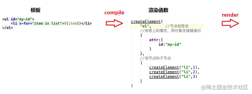 命令式渲染:需要具体代码表达在哪里,做什么,如何实践