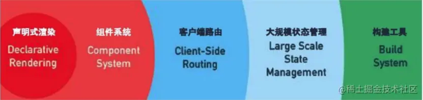 声明式渲染:所谓声明式渲染只需要声明在哪里,做什么,而无需关心如何实现