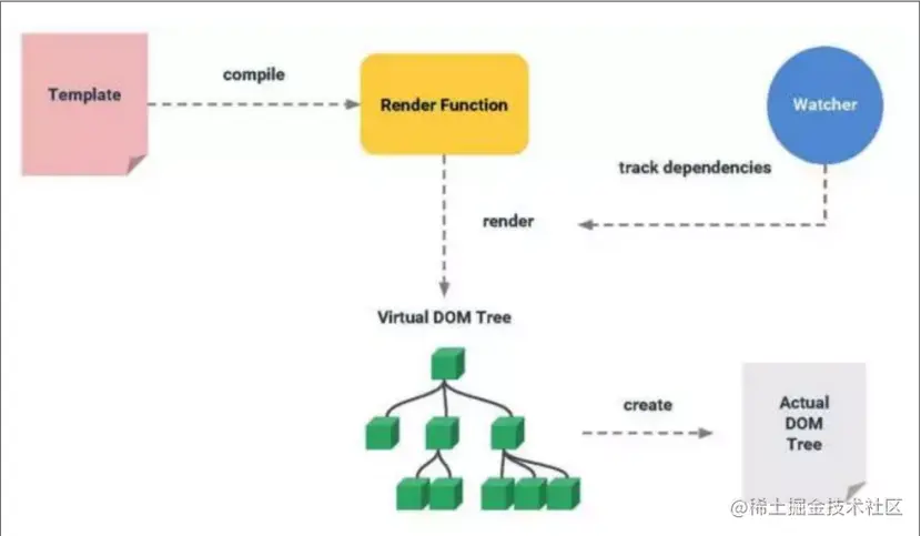 运行的js速度是很快的,大量的操作DOM就会很慢,时常在更新数据后会重新渲染页面,这样造成在没有改变数据的地方也重新渲染了DOM节点,这样就造成了很大程度上的资源浪费。