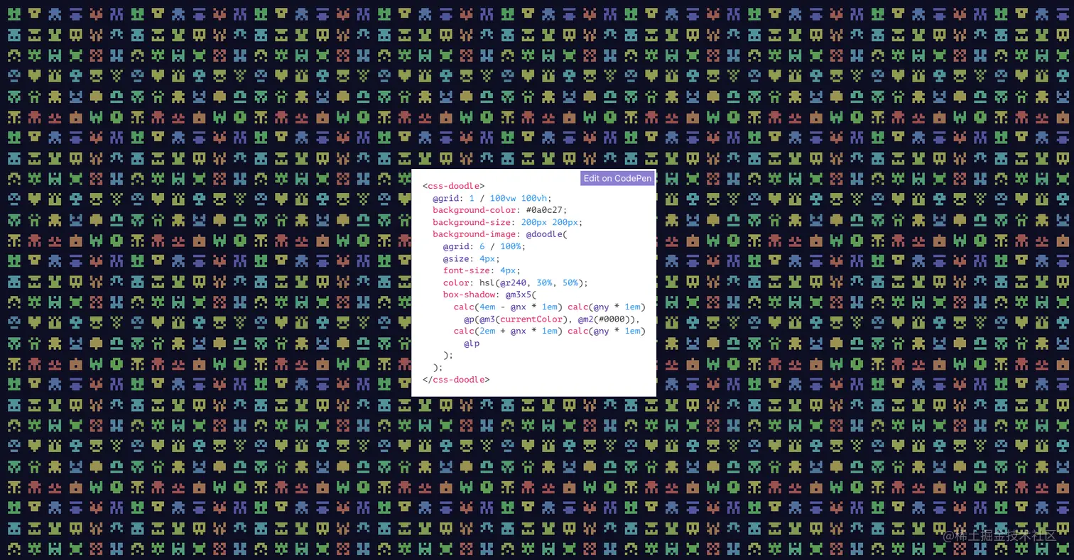 - css-doodle - 一个开源的使用CSS绘制各种纹理图形的 Web 组件。