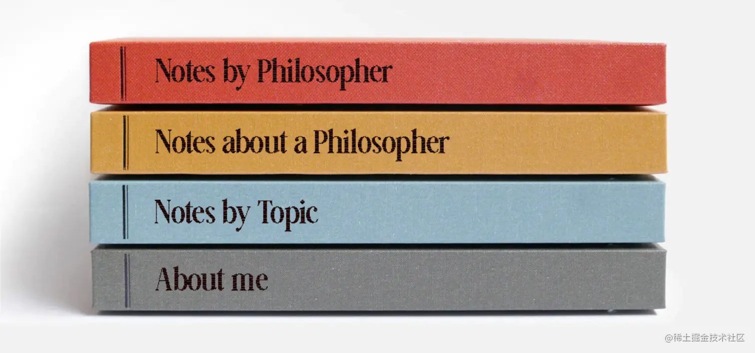 - desolhar-philo - 作者建了一个网站,来整理在过去 10 年中阅读的 90 多本哲学书籍中的笔记。太强了,作者只是一个业余爱好者。