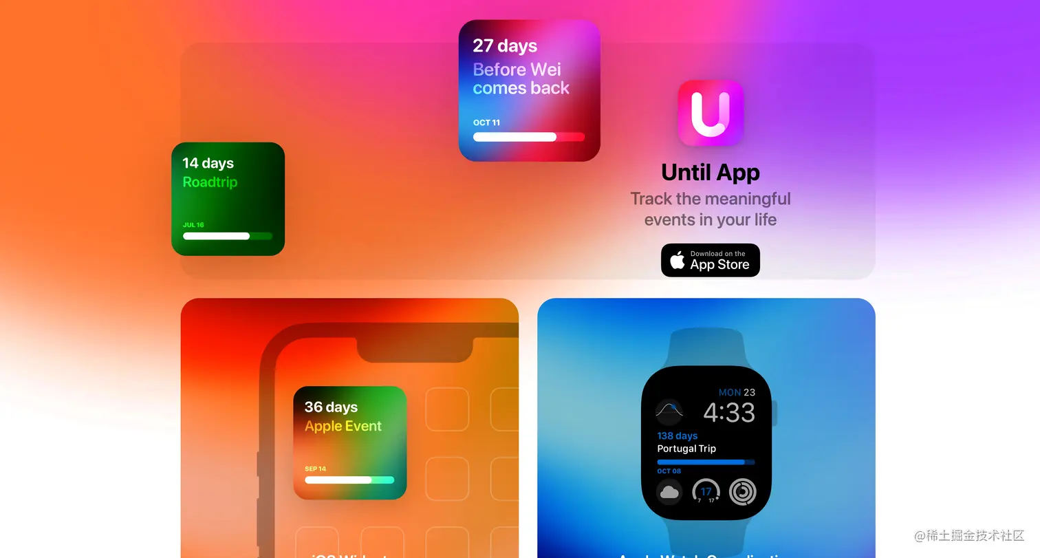 - Until - 一个倒数日的 APP,可以在 iPad 或者 iPhone 上创建桌面Widget,也可以在手表上看。