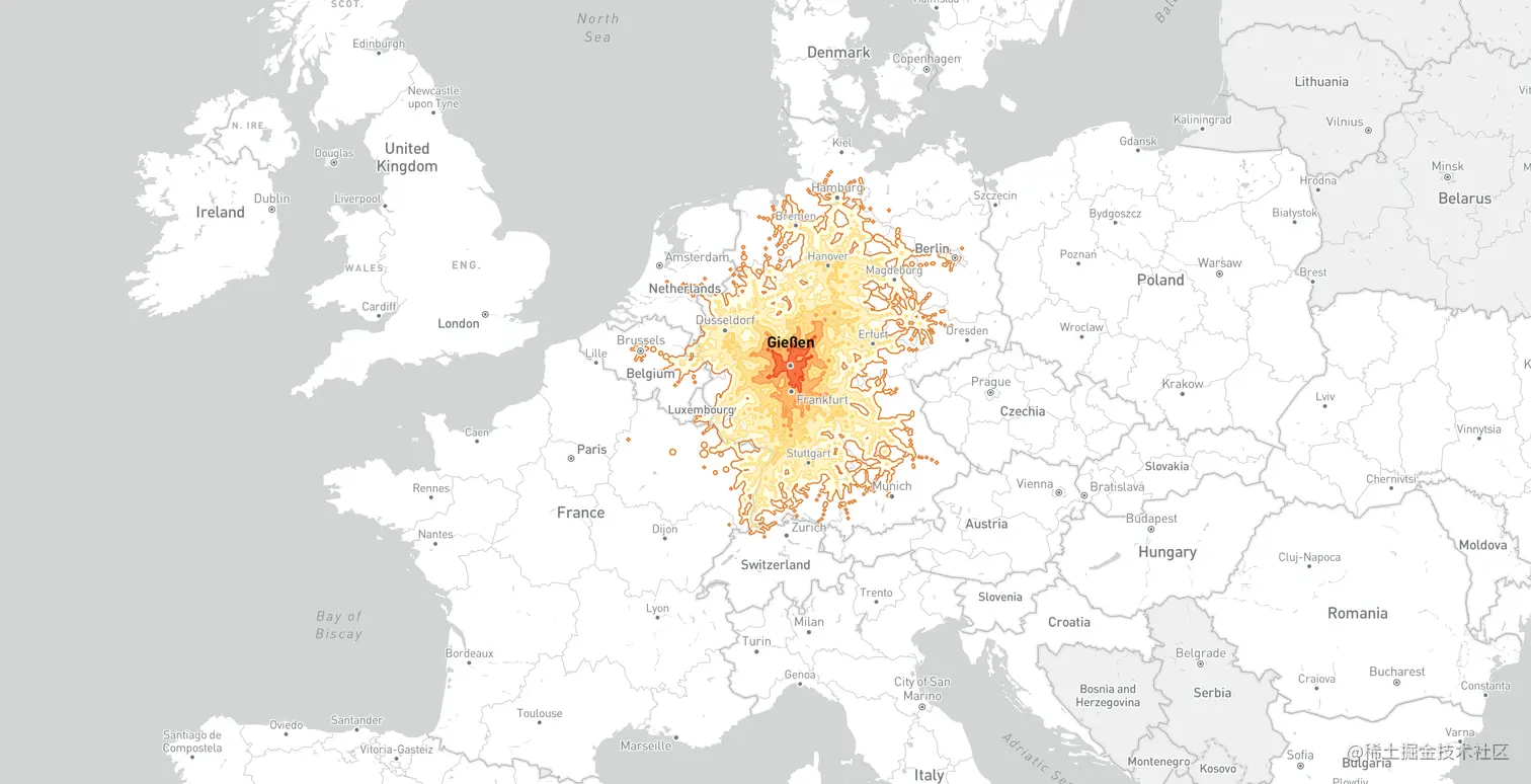 - 坐火车5小时能走多远? - 这张地图显示可以从欧洲的某个车站行驶 5 小时能到的地方。网站是 @_benjamintd 基于 Direkt Bahn Guru 这个项目来做的。